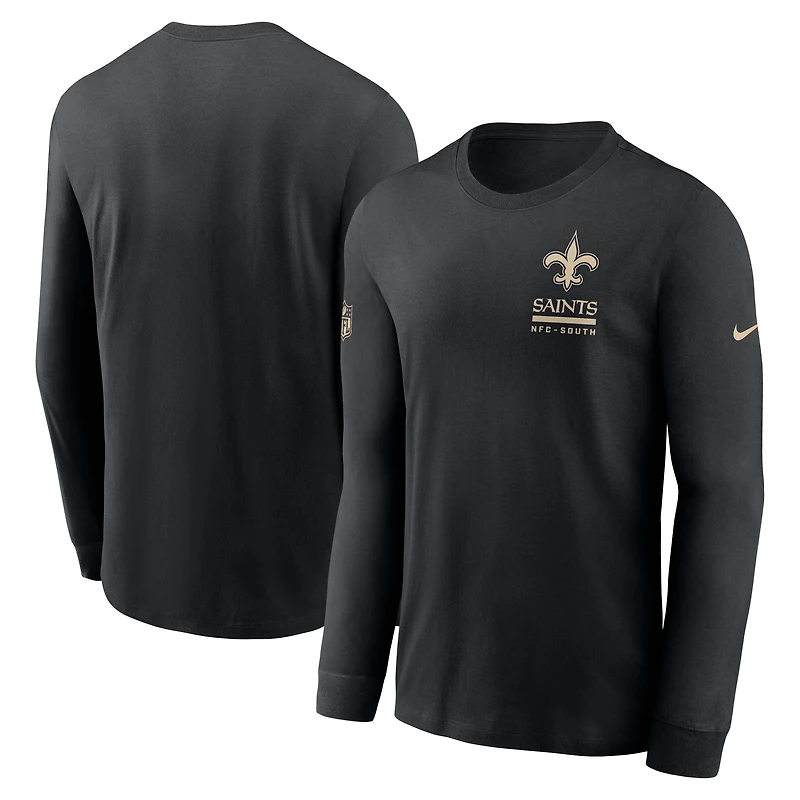 Dress like a member of the New Orleans Saints in this Sideline Dri-FIT Long Sleeve T-Shirt by Nike. It features sweat-wicking technology to keep you dry and comfortable, whether you're cheering from the stands or representing the team around town. Made with lightweight jersey fabric, this New Orleans Saints tee is ideal for everyday wear.