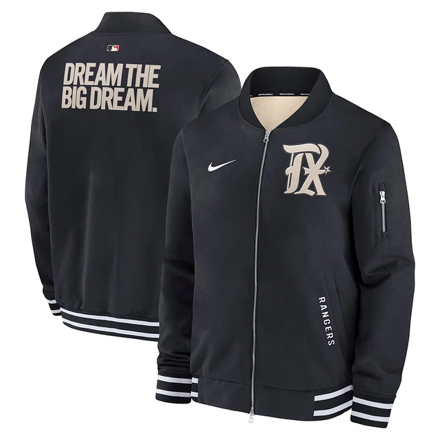 Men's Nike Black Texas Rangers Authentic Collection City Connect Full-Zip Bomber Jacket