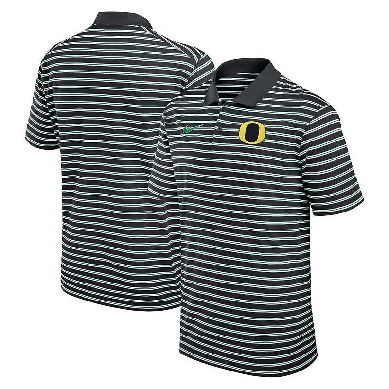 Men's Nike Black/White Oregon Ducks Primetime Victory Striped Dri-FIT Polo