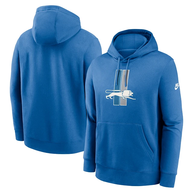 Men's Nike Blue Detroit Lions Rewind Club Logo Pullover Hoodie