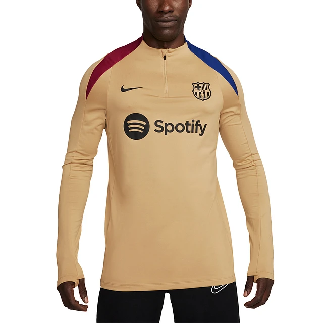Men's Nike Gold Barcelona Strike Drill 2024/25 Performance Quarter-Zip Long Sleeve Top