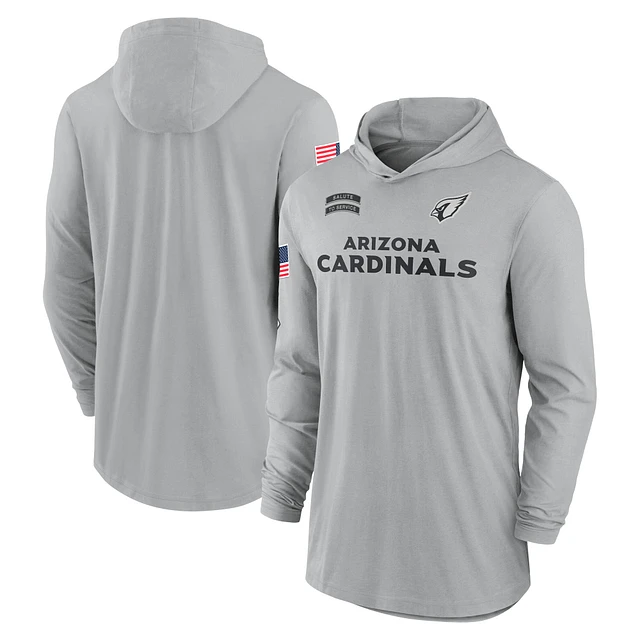 Men's Nike Gray Arizona Cardinals 2024 Salute to Service Lightweight Performance Long Sleeve Hooded T-Shirt