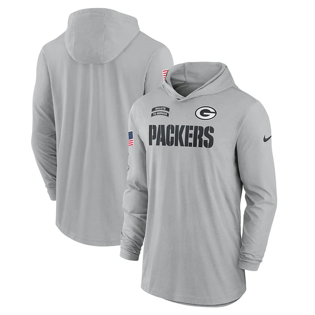 Men's Nike Gray Green Bay Packers 2024 Salute to Service Lightweight Performance Long Sleeve Hooded T-Shirt
