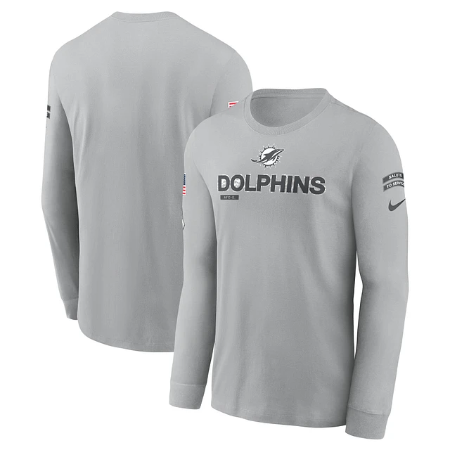 Men's Nike Gray Miami Dolphins 2024 Salute To Service Long Sleeve T-Shirt