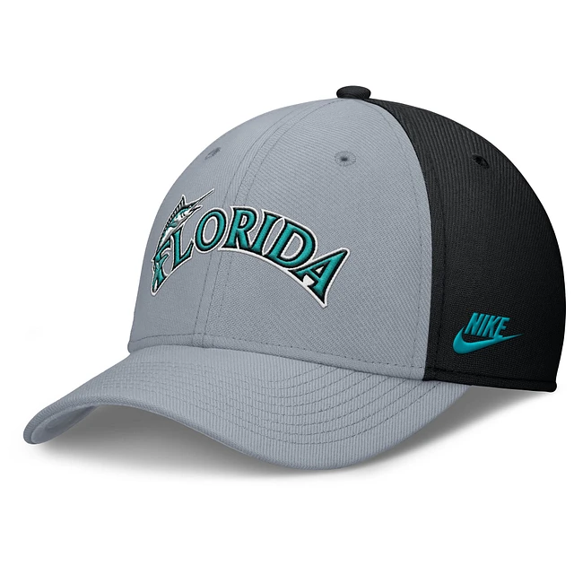Men's Nike Gray/Black Florida Marlins Rise Swoosh Performance Flex Hat
