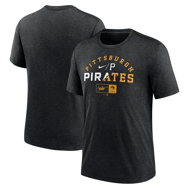 Men's Nike Heather Black Pittsburgh Pirates Rewind Review Slash Tri-Blend T-Shirt