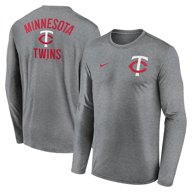 Men's Nike Heather Charcoal Minnesota Twins 2-Hit Legend Performance Long Sleeve T-Shirt