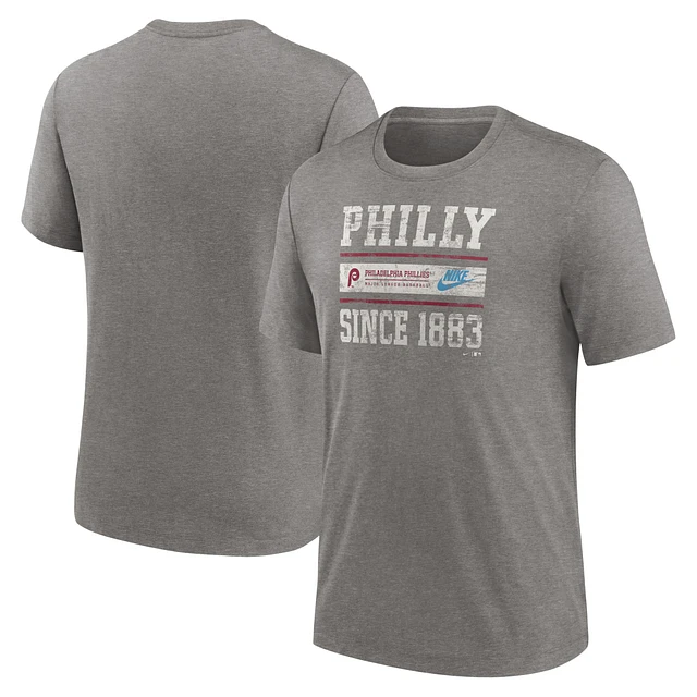 Men's Nike Heather Charcoal Philadelphia Phillies Cooperstown Collection Local Stack Tri-Blend T-Shirt