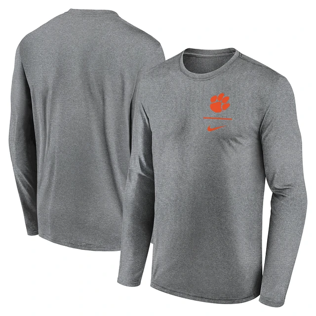 Men's Nike Heather Gray Clemson Tigers Primary Stack Legend Long Sleeve T-Shirt