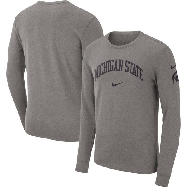 Men's Nike Heather Gray Michigan State Spartans Arch 2-Hit Long Sleeve T-Shirt