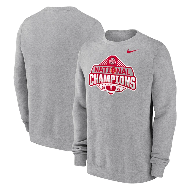 Men's Nike Heather Gray Ohio State Buckeyes College Football Playoff 2024 National Champions Official Logo Pullover Sweatshirt