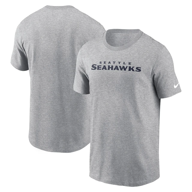 Men's Nike Heather Gray Seattle Seahawks Primetime Wordmark Essential T-Shirt