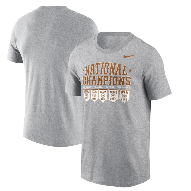 Men's Nike Heather Gray Texas Longhorns Five-Time Volleyball National Champions T-Shirt