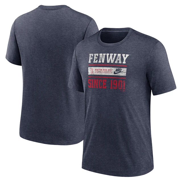 Men's Nike Heather Navy Boston Red Sox Cooperstown Collection Local Stack Tri-Blend T-Shirt