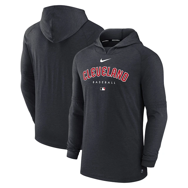 Men's Nike Heather Navy Cleveland Guardians Authentic Collection Early Work Tri-Blend Performance Pullover Hoodie
