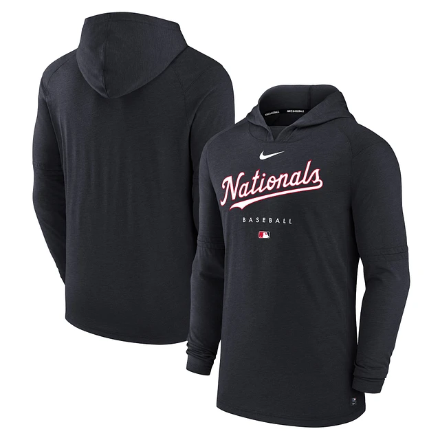 Men's Nike Heather Navy Washington Nationals Authentic Collection Early Work Tri-Blend Performance Pullover Hoodie