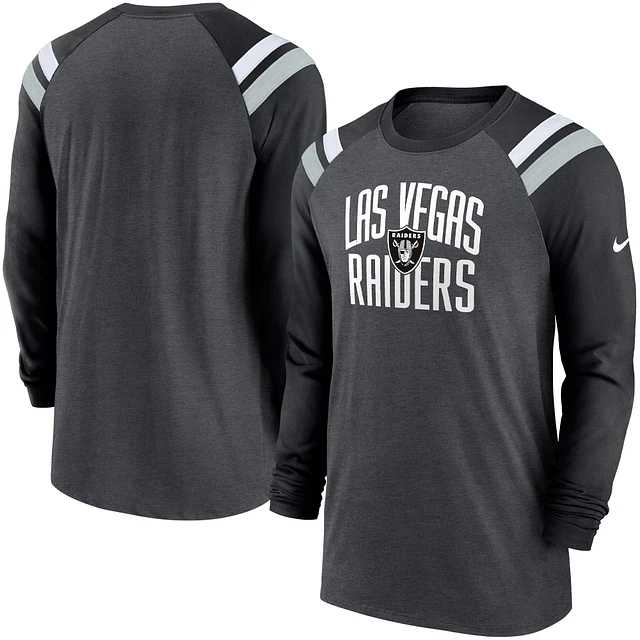 Men's Nike Heathered Charcoal/Black Las Vegas Raiders Tri-Blend Raglan Athletic Long Sleeve Fashion T-Shirt