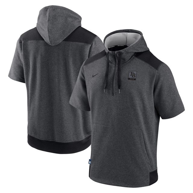 Men's Nike Heathered Charcoal/Black Tampa Bay Rays Authentic Collection Dry Flux Performance Quarter-Zip Short Sleeve Hoodie