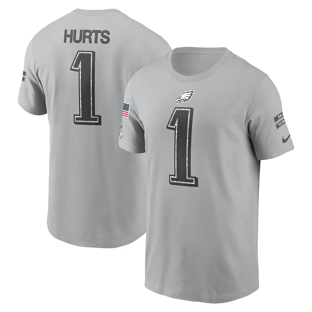 Men's Nike Jalen Hurts Gray Philadelphia Eagles 2024 Salute To Service Name & Number T-Shirt