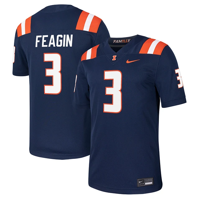 Men's Nike Kaden Feagin Navy Illinois Fighting Illini NIL Football Game Jersey