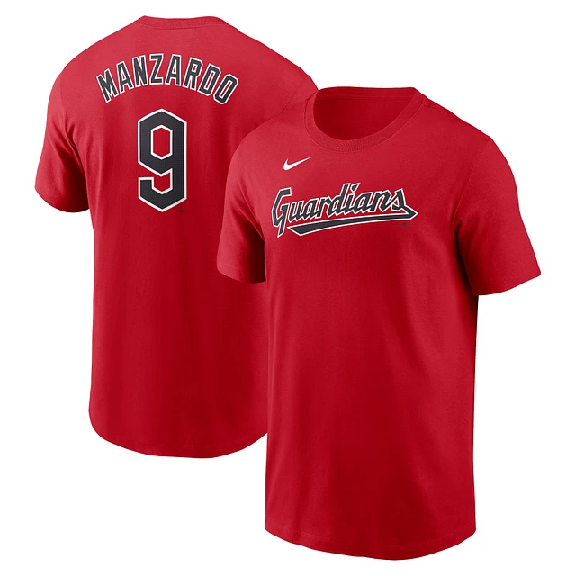 Men's Nike Kyle Manzardo Red Cleveland Guardians Fuse Name & Number T-Shirt