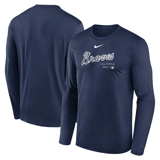 Men's Nike Navy Atlanta Braves Authentic Collection Practice Performance Long Sleeve T-Shirt
