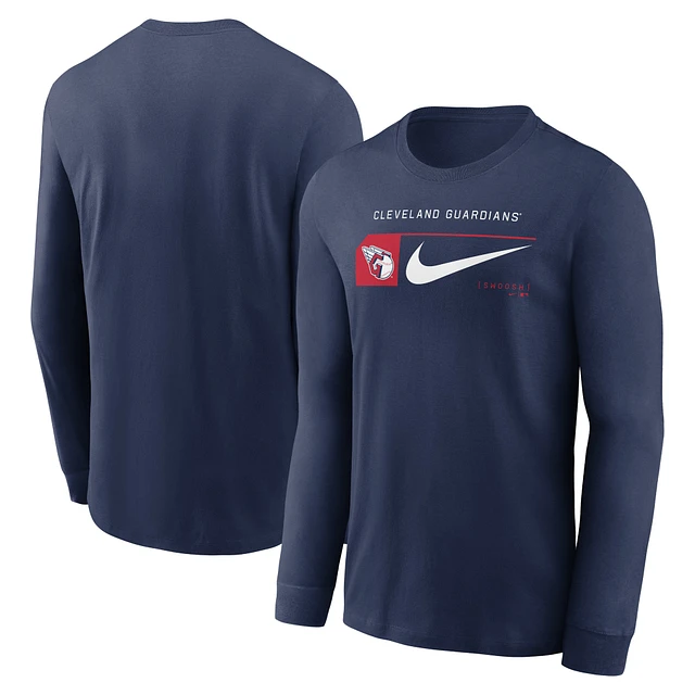 Men's Nike Navy Cleveland Guardians Local Logo Swoosh Lockup Long Sleeve T-Shirt