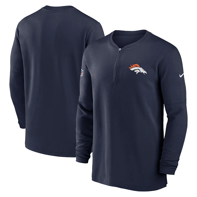 Men's Nike Navy Denver Broncos 2023 Sideline Performance Long Sleeve Tri-Blend Quarter-Zip Top