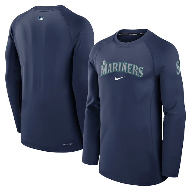 Men's Nike Navy Seattle Mariners Authentic Collection Game Time Raglan Performance Long Sleeve T-Shirt