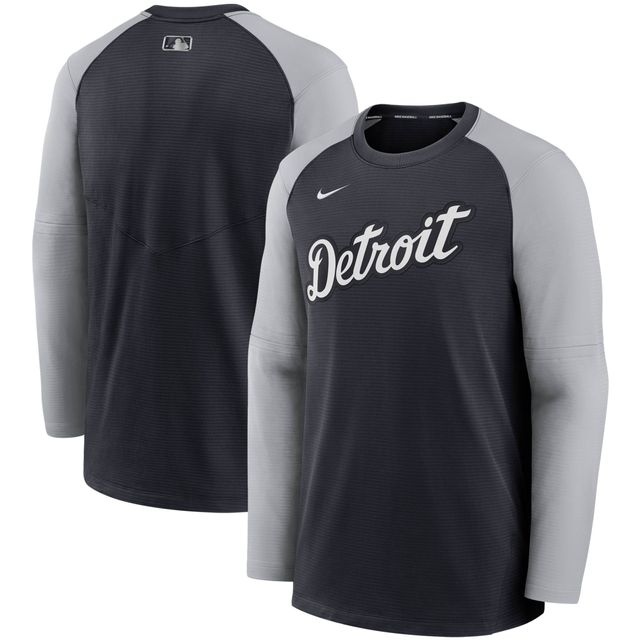 Men's Nike Navy/Gray Detroit Tigers Authentic Collection Pregame Performance Raglan Pullover Sweatshirt