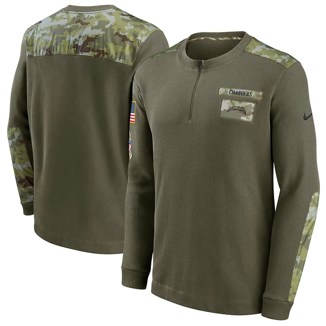 Men's Nike Olive Los Angeles Chargers Salute To Service Henley Long Sleeve Thermal Top