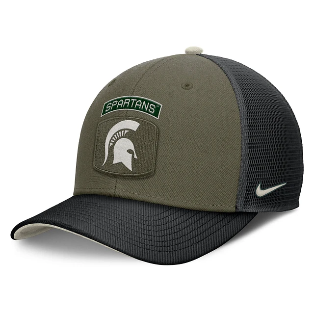 Men's Nike Olive/Black Michigan State Spartans 2024 Military Appreciation Rise Trucker Adjustable Hat
