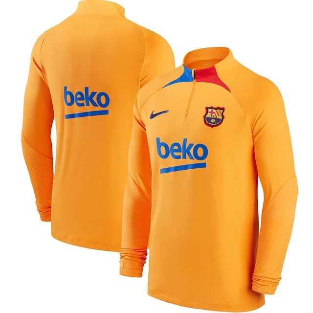 Men's Nike Orange Barcelona 2021/22 Strike Drill Raglan Quarter-Zip Long Sleeve Top