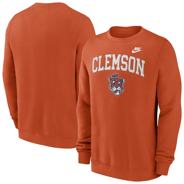 Men's Nike Orange Clemson Tigers Legacy Classic Tackle Twill Embroidered Arch Over Logo Pullover Sweatshirt