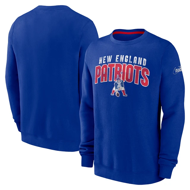 Men's Nike Royal New England Patriots Rewind Team Shout Pullover Sweatshirt