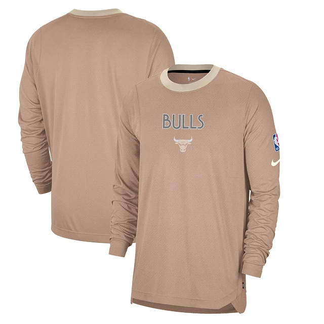Men's Nike Tan Chicago Bulls 2024/25 City Edition Authentic Pregame Performance Long Sleeve Shooting T-Shirt