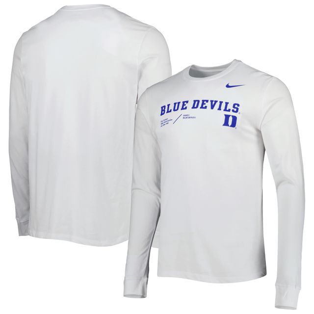 Men's Nike White Duke Blue Devils Team Practice Performance Long Sleeve T-Shirt