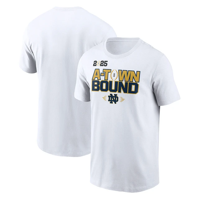 Men's Nike White Notre Dame Fighting Irish College Football Playoff 2025 National Championship Game A-Town Bound T-Shirt
