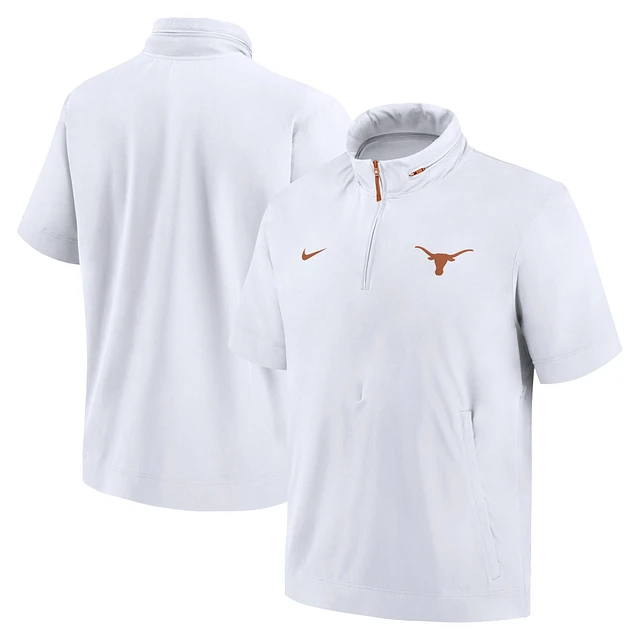 Men's Nike White Texas Longhorns 2024 Sideline Coach Short Sleeve Half-Zip Hoodie Jacket