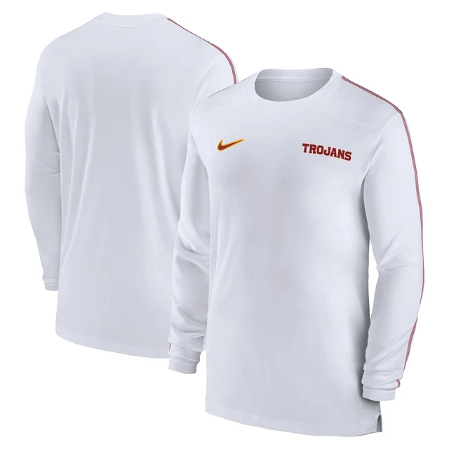 Men's Nike White USC Trojans 2024 Sideline Coach UV Performance Long Sleeve T-Shirt