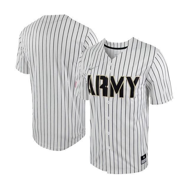 Men's Nike White/Black Army Black Knights Pinstripe Replica Full-Button Baseball Jersey