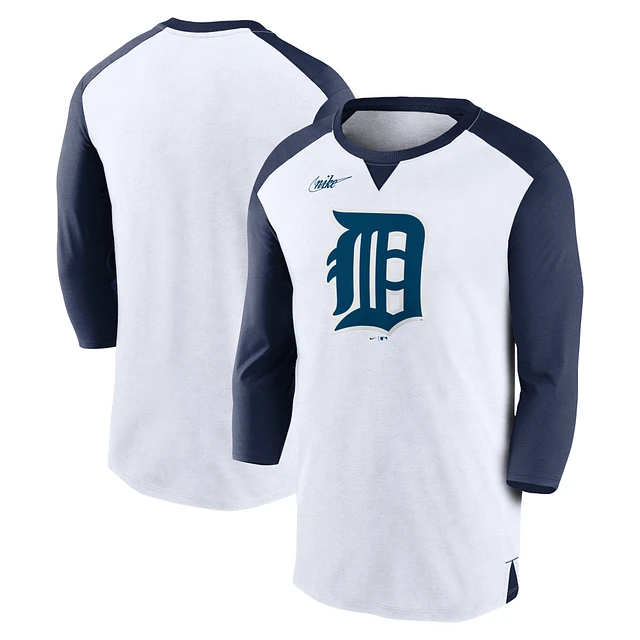 Men's Nike White/Navy Detroit Tigers Rewind 3/4-Sleeve T-Shirt