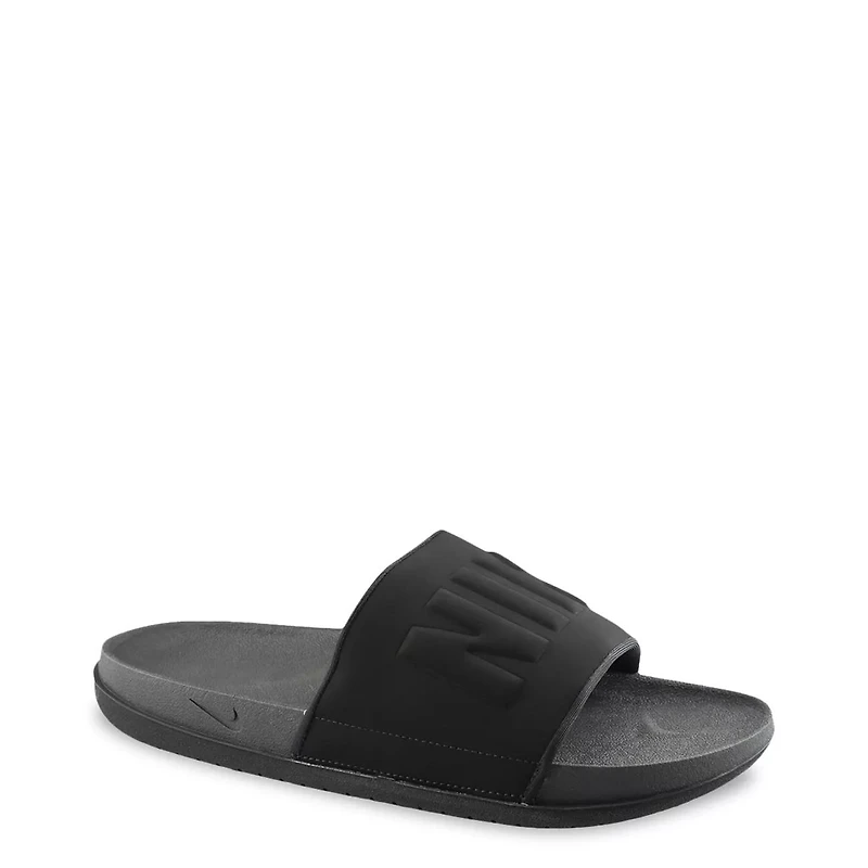 Extremely comfortable design in a stylish look, these Nike Off Court black slide will never let you down on the easy and casual moments. Featuring a soft bandage synthetic upper with a bold embossed logo. These slip-ons are styled with a open toe, a jersey lining, a unique foam for superior cushioning and a deep flex-grooved outsole for comfortable grip.