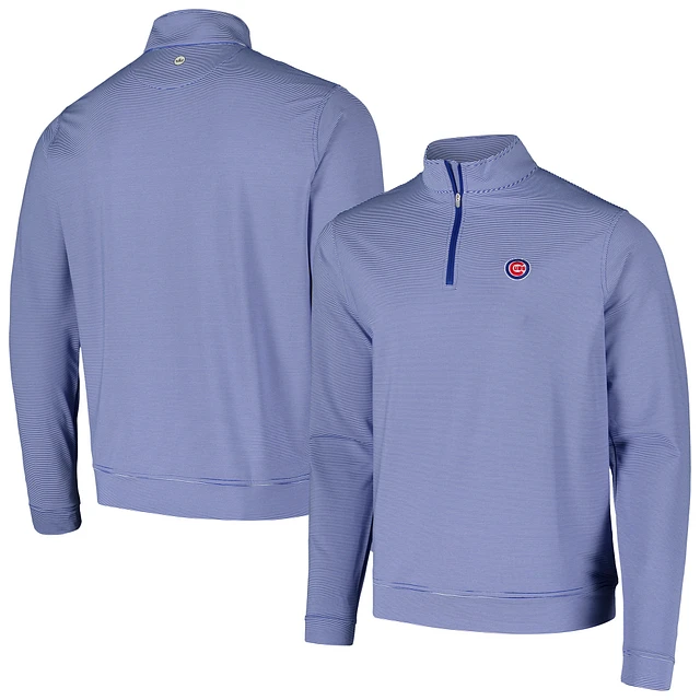 Men's Peter Millar Royal Chicago Cubs Perth Sugar Stripe Performance Quarter-Zip Top