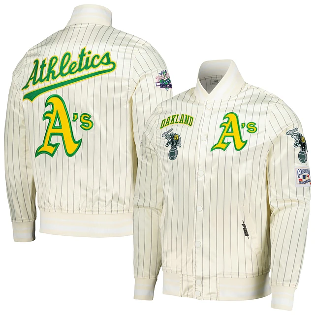 Men's Pro Standard Cream Oakland Athletics Cooperstown Collection Pinstripe Retro Classic Satin Full-Snap Jacket