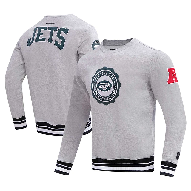 Men's Pro Standard Heather Gray New York Jets Crest Emblem Pullover Sweatshirt