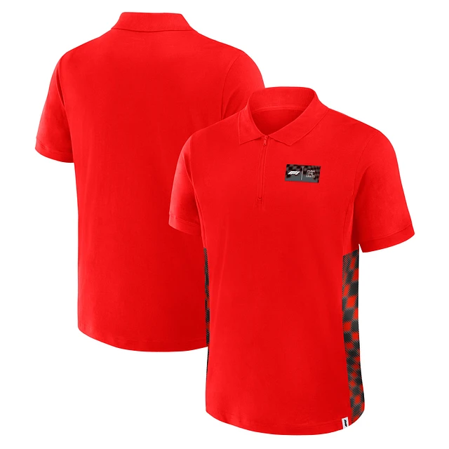 Men's Red Formula 1 Tempo Halftone Grid Panel Quarter-Zip Polo