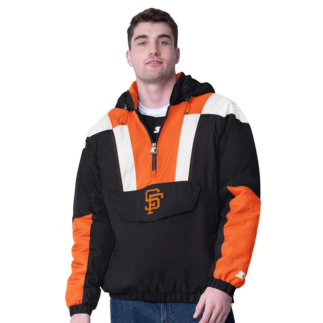 Men's Starter Black San Francisco Giants Cooperstown Collection Charger Half-Zip Jacket