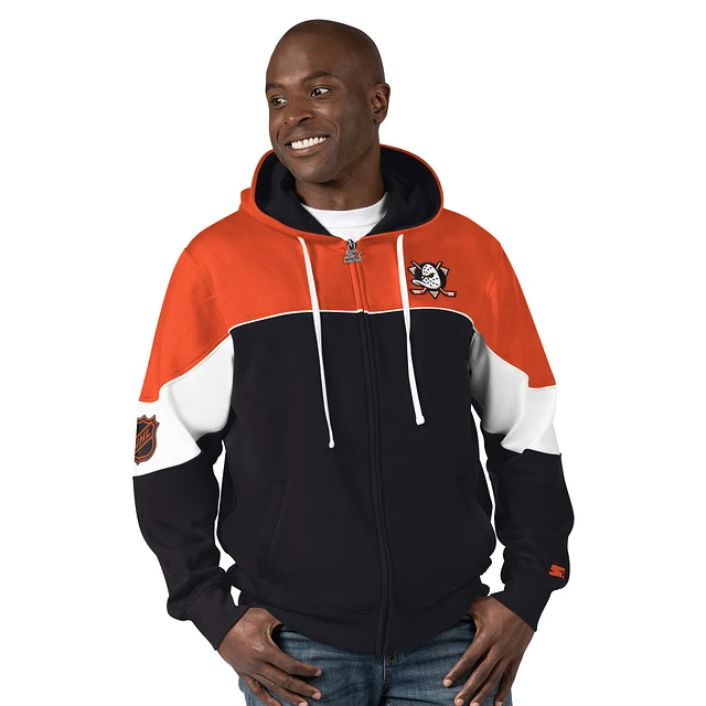 Men's Starter Black/Orange Anaheim Ducks Power Forward Full-Zip Hoodie