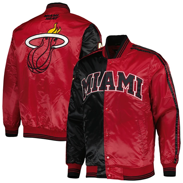 Men's Starter Black/Red Miami Heat Fast Break Satin Full-Snap Jacket